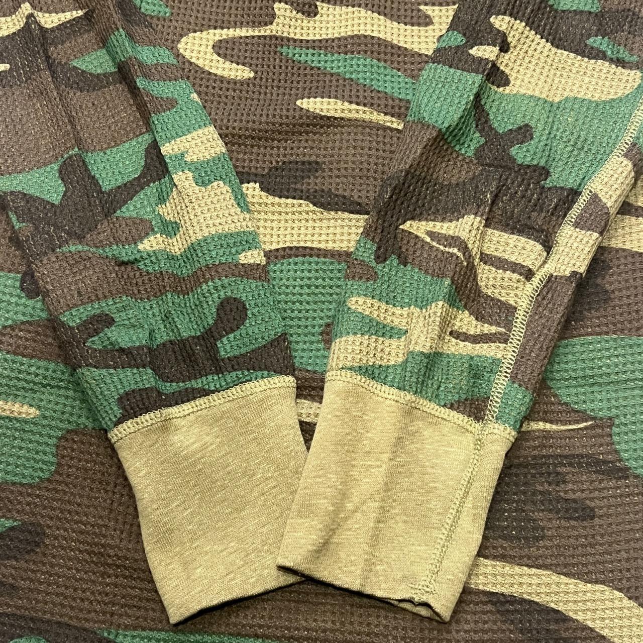 オーソドックスなワッフル編み、ヘンリーネックでウッドランドカモ柄。