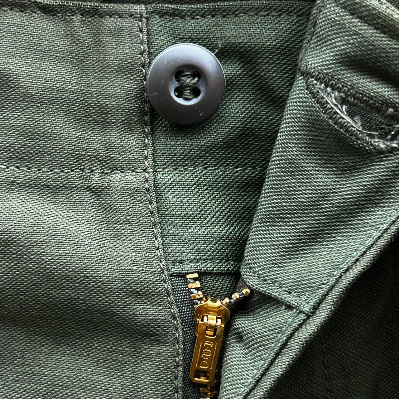 古き良きコットンサテン生地、ポケットとサイド共にダブルステッチ。
